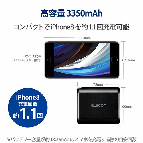 ■本製品(バッテリー容量3350mAh)でスマートフォンを約1.1回充電可能です。