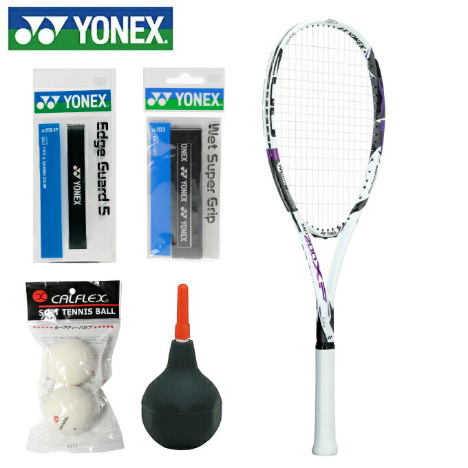 5点セット ヨネックス ソフトテニスラケットセット メンズ レディース マッスルパワー200XF + グリップ + ソフト練習球2球 + エッジガード5 + セーフティバルブポンプ YONEX