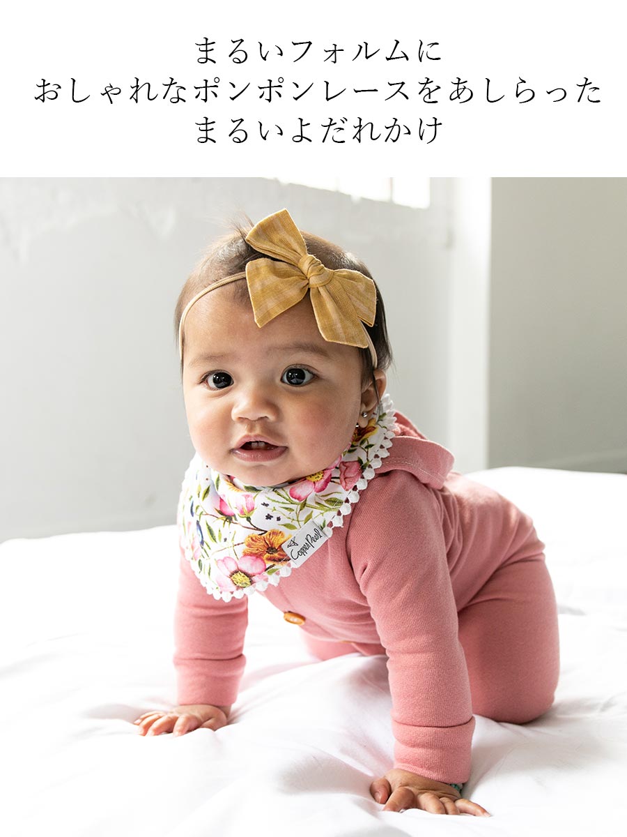 また、クリスマスやこどもの日にプレゼントすればベビーがもっとファッショナブルに! コッパーパール ファッションビブ 2枚セット ポンポンレースをあしらったまるいよだれかけ スタイ アメリカ生まれのベビーブランド 「コッパーパール」から届いた『ファッションビブ 2枚セット』。